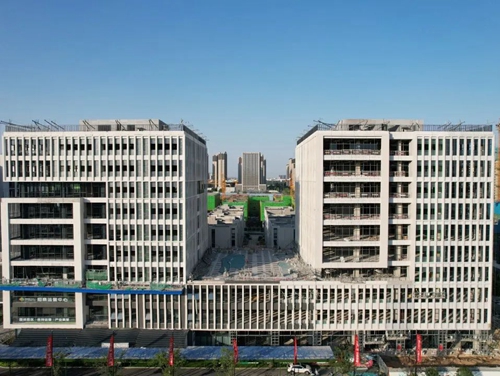 金岱智慧產業(yè)園作為河南省“三個一批”簽約重點項目,鄭州市第一批重點建設小微企業(yè)園項目,自2022年4月13日完成摘地以來,建設招商同步進行。目前園區(qū)一期已全部封頂、正在進行外立面和景觀施工,園區(qū)二期已經封頂,同時在進行主體建設,部分樓棟二層主體結構建設已完成,預計2024年全園投產。園區(qū)招商成果顯著,已招引智能制造、科技型企業(yè)近四十家,高質量產業(yè)發(fā)展藍圖已然呈現。