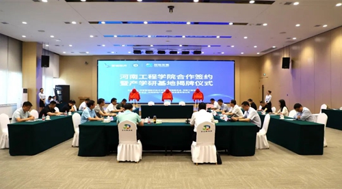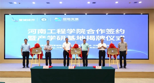 會上,河南工程學(xué)院、管城經(jīng)濟(jì)技術(shù)開發(fā)區(qū)管理委員會、河南鄭地產(chǎn)城融合建設(shè)發(fā)展有限公司共同簽署產(chǎn)學(xué)研合作協(xié)議,并現(xiàn)場為河南工程學(xué)院校外實(shí)習(xí)基地、產(chǎn)學(xué)研合作基地、就業(yè)基地揭牌。