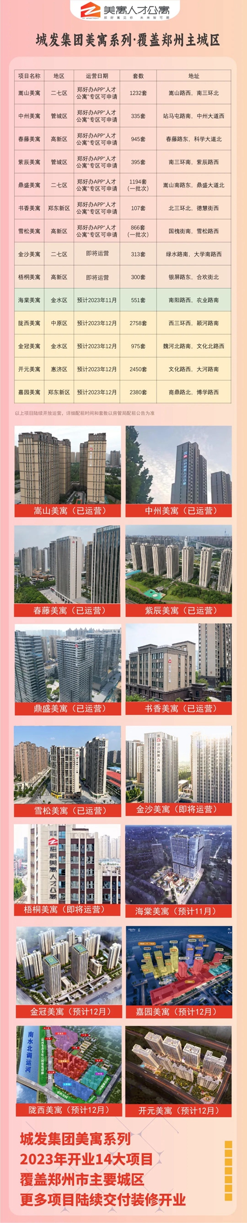 定于2023年9月25日08:00將房源上線“鄭州市保障性租賃住房(人才公寓)系統(tǒng)”進行配租。