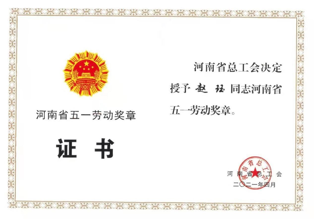 為表彰先進、樹立典型,進一步增強新時代工人階級的自豪感和使命感,營造勞動光榮的社會風尚和精益求精的敬業(yè)風氣,河南省總工會印發(fā)《關于表彰2021年河南省五一勞動獎和河南省工人先鋒號的決定》,我公司趙玨榮獲“河南省五一勞動獎章”殊榮,彰顯了在平凡崗位上書寫不平凡故事,努力成長為知識型、技能型和創(chuàng)新型勞動者,為公司項目發(fā)展不斷賦能。